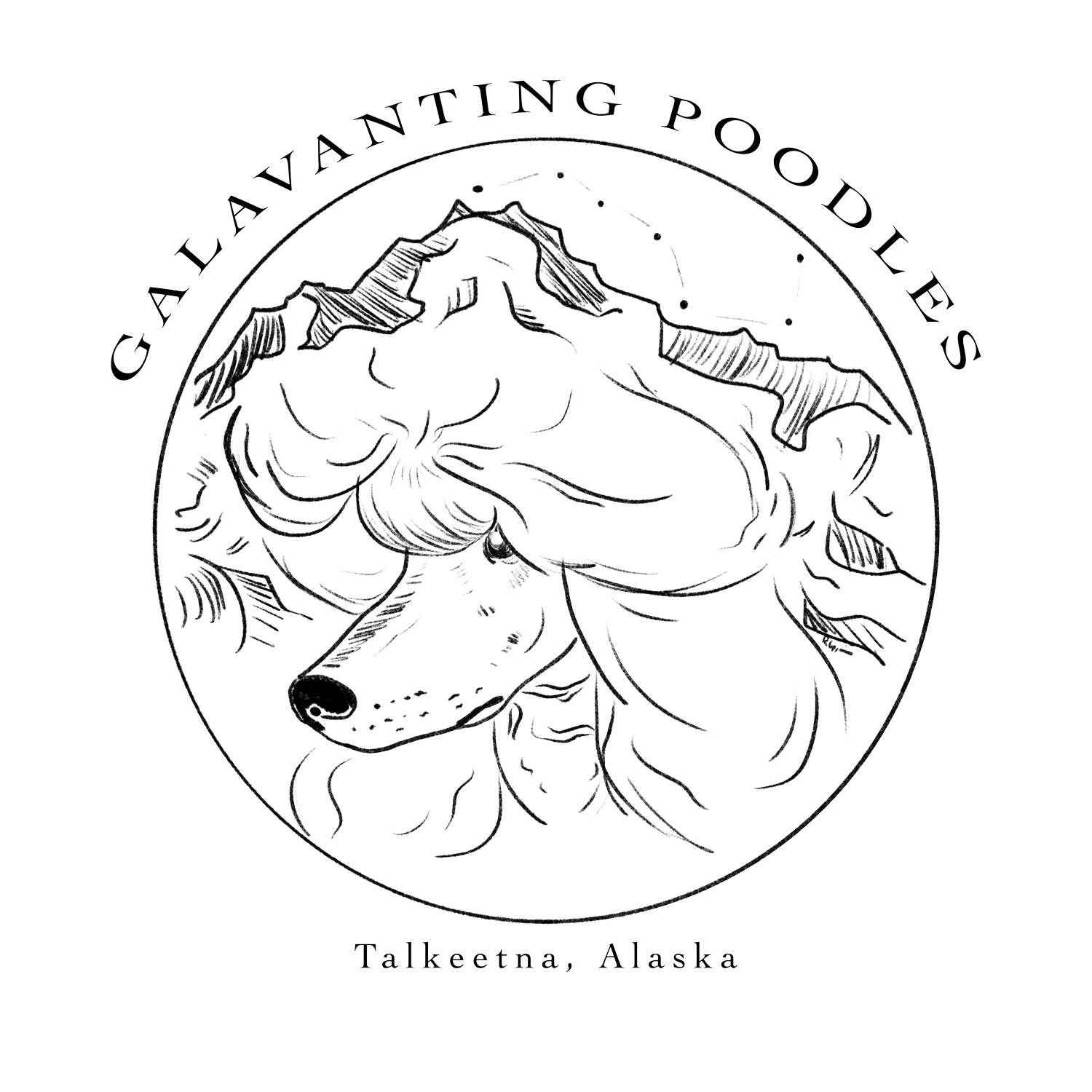 Our poodles are raised in the old growth forests of the Susitna Valley in Talkeetna, Alaska. Life for Galavanting Poodles includes hiking, camping, lake and river adventures, as well as backcountry experiences.