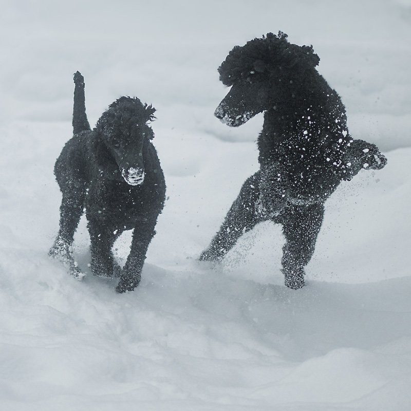 Poodles, despite their waterfowl hunting origins, can have varied prey drives. Some might be more driven to chase small things such as squirrels, chickens, or other fowl. Others might be more driven to play and swim in water and retrieve bumpers or waterfowl. A poodle with a strong hunting drive may alert to small animals in your yard or on hikes. He may also notice birds and follow them with his eyes... Understanding your poodle’s drives can help you tailor training and enrichment activities to their needs.