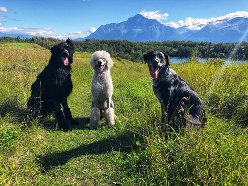 My two male Standard Poodles, Wallace and Bryce, along with my rescue Catahoula dog, Jupiter!