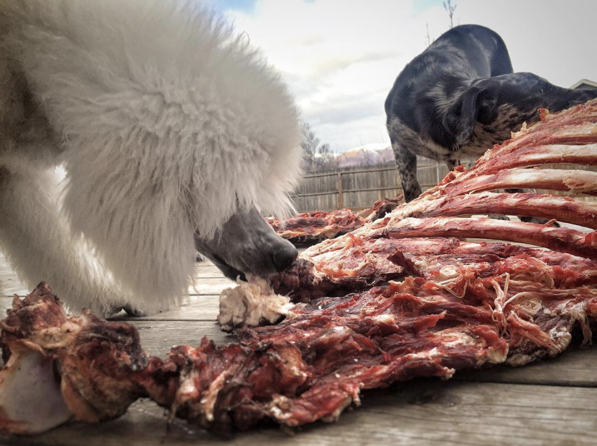And finally, raw bones. Bones are likely my dogs' favorite part of their raw diet. The bones are great for their jaws and teeth! Those pearly whites stay white because of their raw bone chewing. And marrow bones aide in brain development.